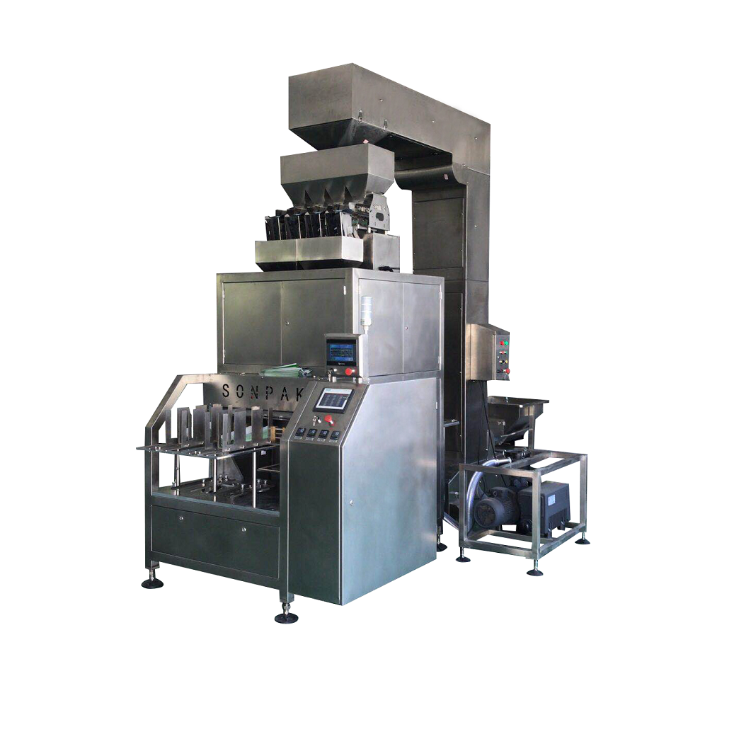適用于五谷雜糧等形狀均勻、流動性較好的顆粒物料的真空整形包裝。全自動化,有效節約生產成本,能自動取袋、送袋、開袋、上袋、充填、整形抽真空、封口、成品輸出。